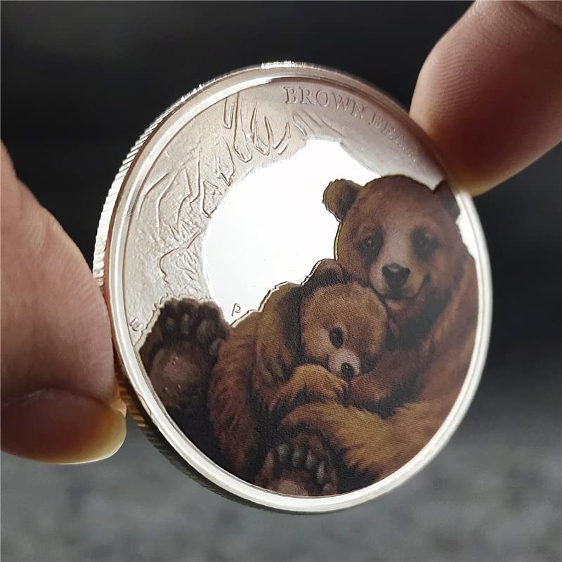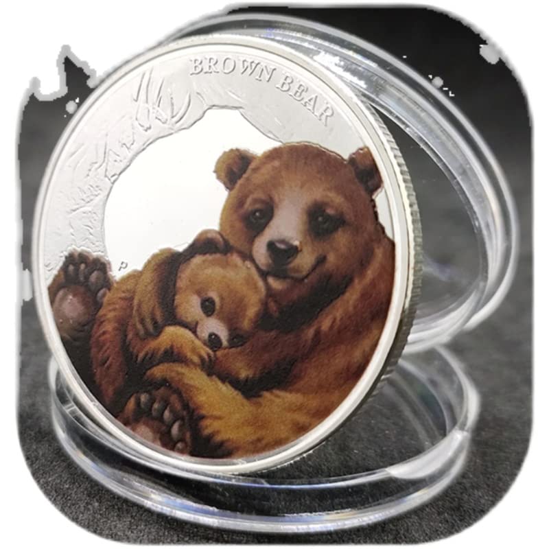 • Brown Bear Commemorative Coins Loving Animal Coins Silver-Plated Coins Portable Lucky Coins New Thanksgiving Gift Foreign Currency