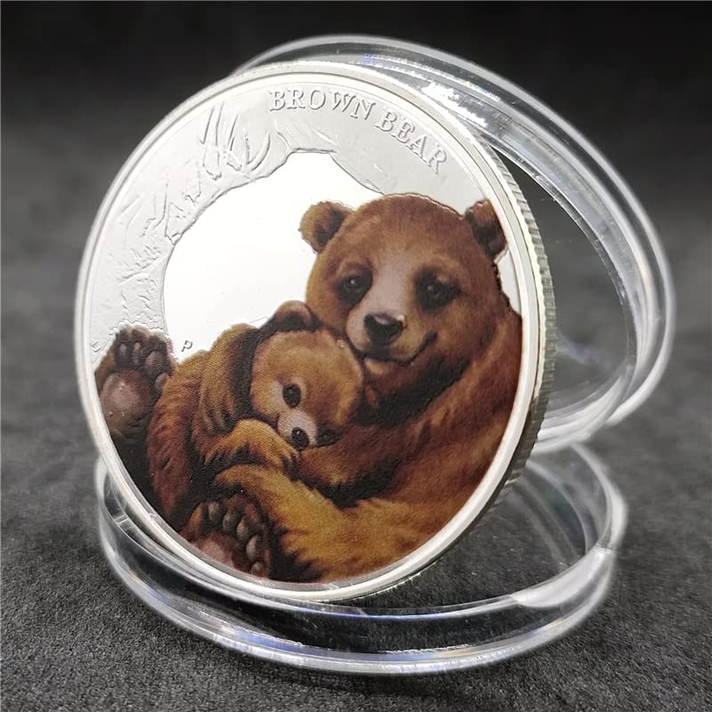 Brown Bear Commemorative Coins Loving Animal Coins Silver-Plated Coins Portable Lucky Coins New Thanksgiving Gift Foreign Currency