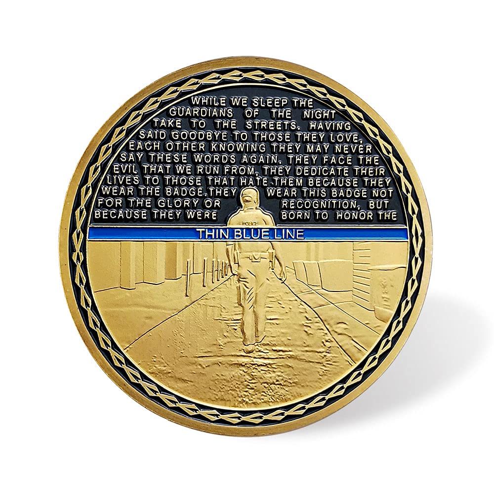 - Reverse shows THIN BLUE LINE,The back of the guardian of peace,policeman's prayer.